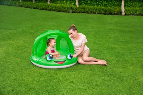 Veľkosť 97 x 66 cm. Objem 26l. 2 varianty - žabka, lienka. Obsah balenia: nafukovací bazén, záplata na opravu.