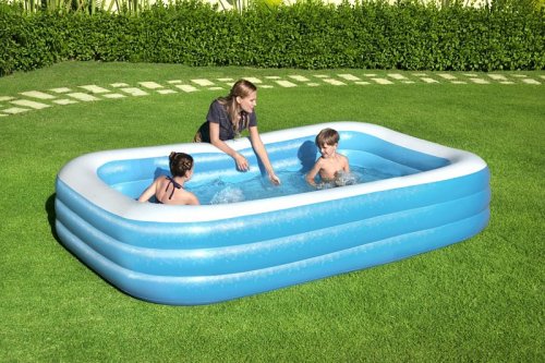 Veľkosť 3.05mx 1.83mx 46cm. Steny bazéna tvoria tri rovnaké nafukovacie komory. Objem vody 1161 l. Tri ventily na vypustenie.