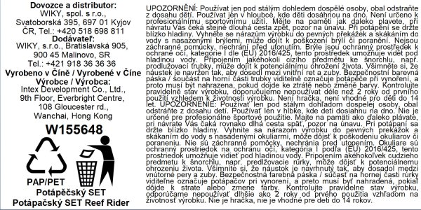 Potápačská sada šnorchel a potápačské okuliare pre nerušené pozorovanie sveta pod hladinou. Rozmer 49x21x8 cm. Vhodné od 14 rokov.