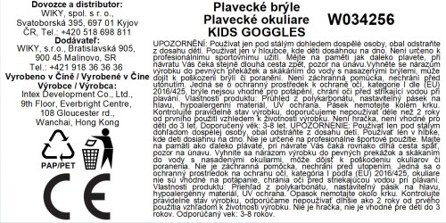 Zoznam bezpečnostných varovaní pre plavecké okuliare vychádza z požiadaviek nariadenia (EÚ) 2023/988 o všeobecnej bezpečnosti výrobkov (GPSR): 1. Vekové obmedzenie: Uistite sa, že plavecké okuliare sú vhodné pre vek používateľa. Niektoré modely môžu byť určené iba pre dospelých alebo staršie deti. 2. Riziko udusenia: Malé prvky (napr. nastaviteľné popruhy a klipy) môžu predstavovať nebezpečenstvo udusenia pre malé deti. Uchovávajte plavecké okuliare a ich časti mimo dosahu detí. 3. Ochrana očí: Plavecké okuliare by sa mali používať iba na plávanie vo vode. Nepoužívajte ich na iné účely, napr. ako ochranu pred slnkom. 4. Viditeľnosť: Uistite sa, že plavecké okuliare zaisťujú dobrú viditeľnosť pod vodou. Rozmazané alebo poškriabané šošovky môžu predstavovať nebezpečenstvo. 5. Prispôsobenie: Plavecké okuliare by mali byť správne prispôsobené, aby sa zabránilo úniku vody do očí. Zle priliehajúce okuliare môžu spôsobovať nepohodlie alebo podráždenie očí. 6. Alergie: Ak trpíte alergiou na latex alebo iné materiály, pred použitím skontrolujte zloženie plaveckých okuliarov. 7. Čistenie a údržba: Plavecké okuliare pravidelne čistite jemným mydlom a vodou. Vyhnite sa použitiu agresívnych čistiacich prostriedkov, ktoré môžu poškodiť šošovky. 8. Praskliny a poškodenie: Pravidelne kontrolujte plavecké okuliare z hľadiska prasklín alebo iného poškodenia. Nepoužívajte poškodené okuliare. 9. Použitie v slanej vode: Po plávaní v slanej vode dôkladne opláchnite plavecké okuliare sladkou vodou, aby ste zabránili korózii. 10. Použitie na otvorenej vode: Buďte opatrní pri používaní plaveckých okuliarov na otvorenej vode. Povoľujte ich použitie na otvorených vodách iba osobám schopným plávať. 11. Ponorenie: Nepotápajte sa do veľkých hĺbok s plaveckými okuliarmi.