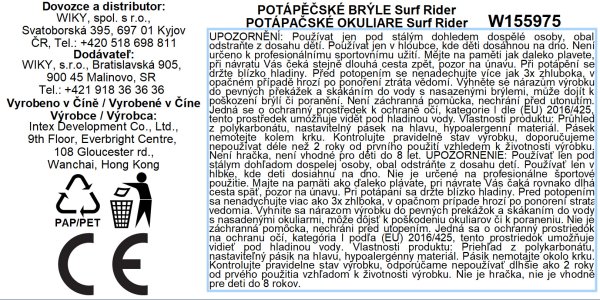 Potapečské okuliare Surf Rider. 2 varianty - modrá, zelená.