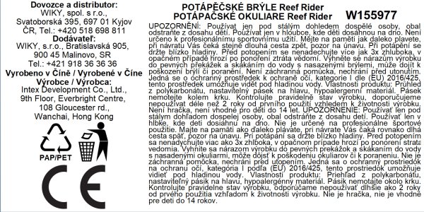 Kvalitné potápačské okuliare Intex z radu Sport Series. Bezpečn é polykarbonátové šošovky. Rámčeky z mäkkej termoplastickej gumy, vďaka ktorým okuliare pohodlne sedia na tvári.