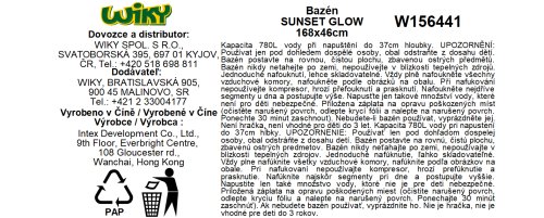 Bazén farebný. Veľkosť 168 x 46 cm, 4 nafukovacie komory, objem 780 l, vypúšťací ventil, opravný set.