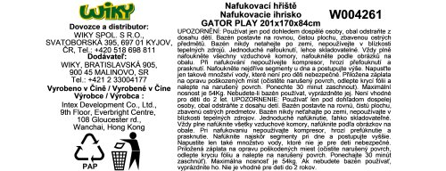 vodná šmykľavka tieniaca huba krokodíl (vodný rozstrekovač, ktorý sa napojí na záhradnú hadicu) 2 nafukovacie ryby vedro a kačička Rozmery: 201 x 170 x 84 cm