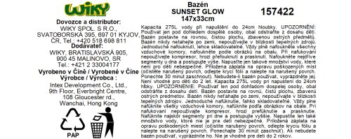 Veselý detský nafukovací bazénik kruhového tvaru s priemerom 147 cm. Týmto bazénikom celkom iste oslníte svojich najmenších a rozžiarite svoju záhradku. Nafukovacie dno, výška: 33 cm, objem vody pri naplnení do výšky 24 cm: 299 l. Rozmer 147 x 33 cm. Rozmery balenia 25 x 23 x 9 cm. Vhodné pre deti od 2 rokov.