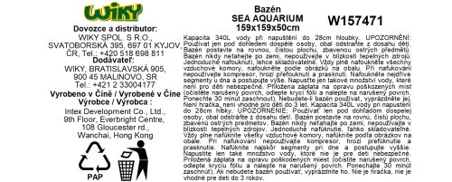 Rozmery: 159 x 159 x 50 cm Objem vody pri naplnení do výšky 36 cm: 424 l