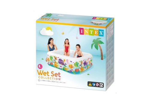 Bazén - akvárium. Rozmery 159 x 159 x 50 cm. Kapacita 340L pri výške hladiny 28 cm.