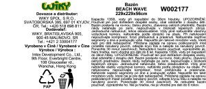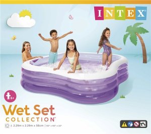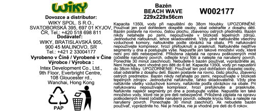 Nafukovací bazén, veľkosť: 229 x 229 x 56 cm, objem: 1250 l pri vodnej hladine 33 cm, vinyl 0,33 mm, 3 nafukovacie komory, vypúšťací ventil, opravná sada