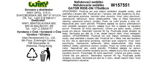2 nafukovacie komory 2 pevné držadlá bez obsahu ftalátov obsahuje záplatu pre rýchle zalepenie Rozmery: 170 x 86 cm