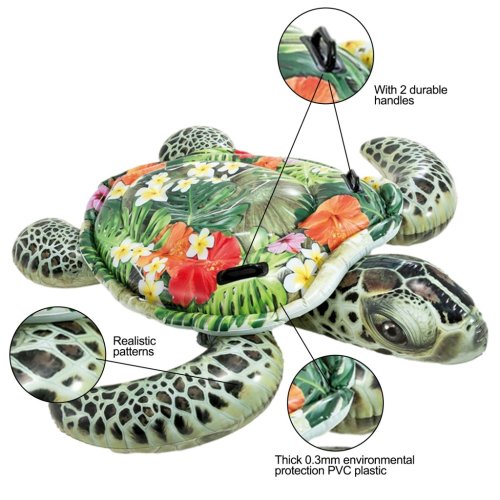 Veľká nafukovacia korytnačka sa postará o poriadnu zábavu pri vode, na dovolenke aj kúpalisku! Vďaka tvaru a stabilnému rozpoloženiu si môžeš dopriať relax a nechať sa unášať vlnami!