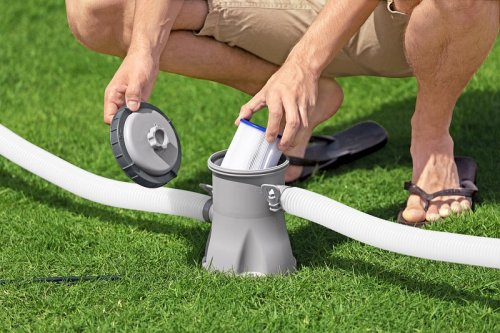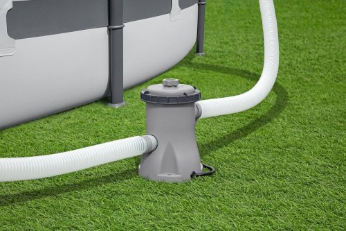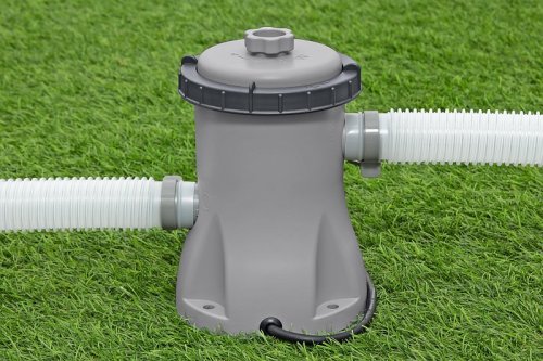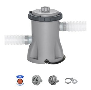 Kartušová filtrácia Flowclear s prietokom vody (výkon čerpadla): 1 249 l/h. Prietok vody integrovaným systémom bazéna (prietok systému): 1 060 l/h. Je možné pripojiť ku všetkým bazénom s objemom 1 100–8 300 l. Rozmer pripojenia k hadici: 3,2 cm. Filtračná vložka: 58093(I). 110-120V~, 0.2A. 220-240V~, 16W. Obsahuje: 1 kartušová filtrácia.