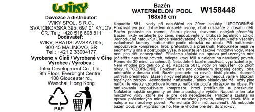 Bazén melón. Rozmery 168 x 38 cm. Kapacita 581 L pri výške hladiny 29 cm.