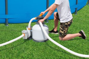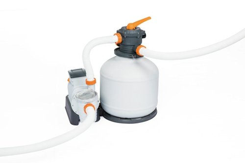 pieskový filter 220-240V, 500W, pre pumpy s prietokom 11355 l/h. Piesok: 20 kremičitý piesok, 0,45-0,85 mm, približne 36Kg, ventil 32mm, hadica 38mm