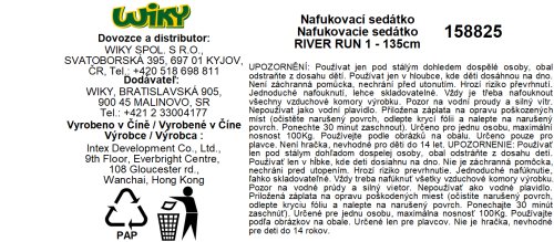 výrobca INTEX farba modro/biela materiál vinyl pevné držadlá zabudovaná opierka na chrbát dva držiaky na pitie dve vzduchové komory lano po obvode konektor umožňujúci spojenie viacerých nafukovačiek Veľkosť: priemer 135 cm Nosnosť 100 kg Odporúčaný vek: od 14 rokov