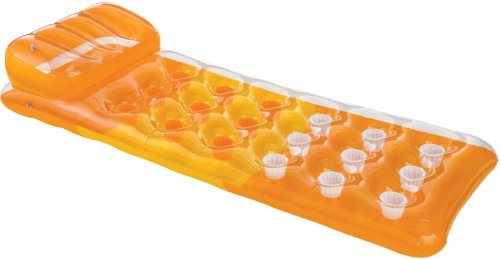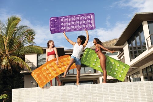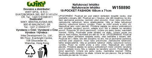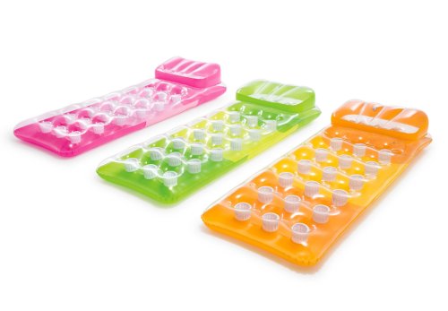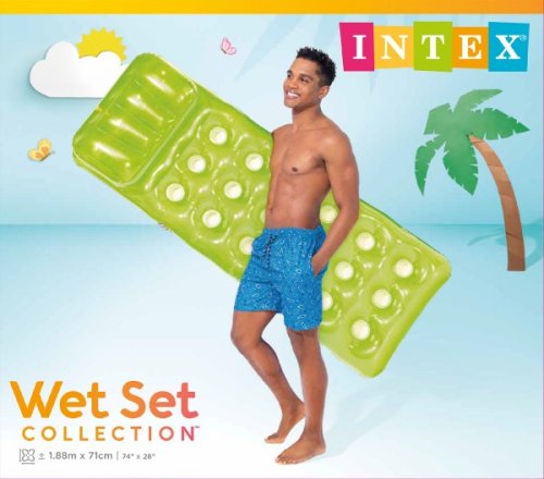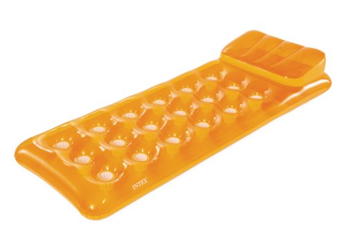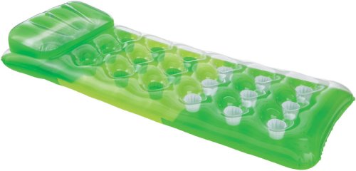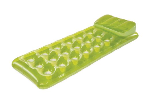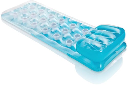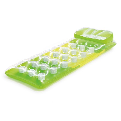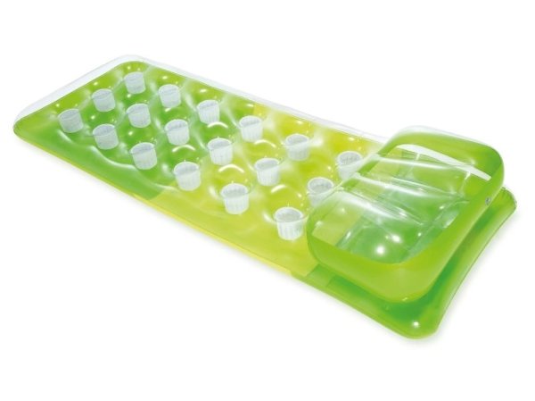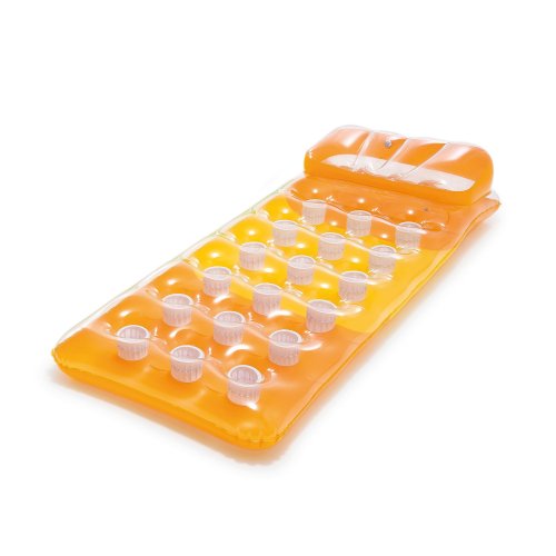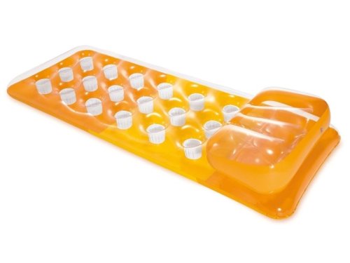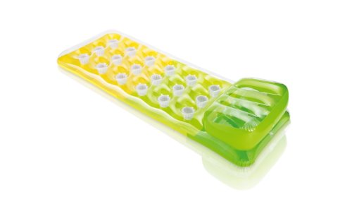 S opaľovacím nafukovacím lehátkom na vodu s podhlavníkom si skvele užijete horúce letné dni v bazéne aj na mori. Lehátko má 2 vzduchové komory a nafukovací vankúš pod hlavou. Príjemnému leňošeniu na vodnej hladine tak nič nebráni! Súčasťou balenia je opravná sada. Vyrobené z kvalitného vinylu (0,28 mm). Maximálna nosnosť 100 kg. Rozmery 188 x 71 cm. Rozmery balenia 23 x 21 x 8 cm. Vhodné od 14 rokov.