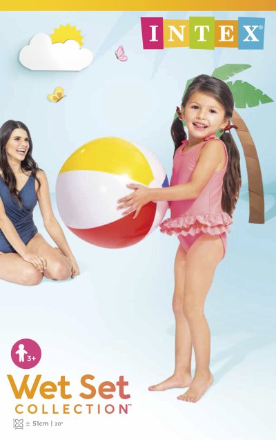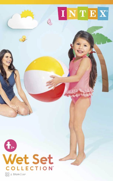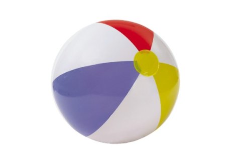 Nafukovacia veľká lopta s farebnými pruhmi. Vhodný do vody alebo na plážový volejbal. Priemer 51 cm. Vek: 3+
