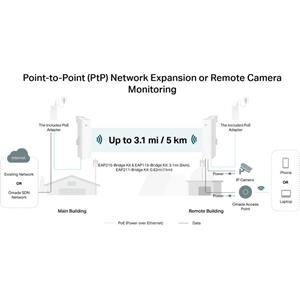 Funkcia *802.11ac pre až 867 Mbps pri rýchlosti bezdrôtového prenosu na 5 GHz. *Ideálna pre dlhodobý bezdrôtový prenos až do 5 km. *Automatické párovanie a flexibilné LED diódy pre efektívne nasadenie. *3× Gigabit Ethernetové porty pre viac pripojení vysokorýchlostných IP kamier. *Podpora Omada SDN pre vzdialený a centralizovaný manažment. *Odolná IP65 krytie proti počasiu a ochrana proti blesku 6kV zaisťujú vhodnosť pre všetky poveternostné podmienky. *Podpora Passive PoE pre flexibilné nasadenie (adaptér je súčasťou balenia).