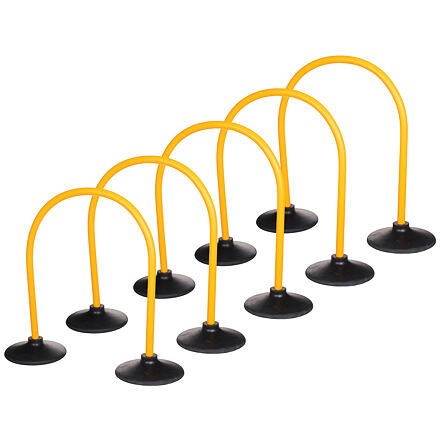 Súprava piatich Merco tréningových oblúkov - Aj v taške. Tréningový oblúk Merco - I slúži na zlepšenie presnosti prihrávok a kontroly nad loptou. Tréningový oblúk Merco je vyrobený z PVC rúrky s priemerom 25 mm a jej súčasťou sú aj dve gumové základne, ktoré oblúku zaistia stabilitu na všetkých povrchoch. Tréningový oblúk Merco - I je tak vhodný nielen pre tréning na klasickom trávnatom ihrisku, ale svoje technické finesy môžu futbalisti skúšať aj na umelej tráve, škvári alebo za nepriaznivého počasia v telocvični. Oblúk je 54 cm vysoký a 45 cm široký.