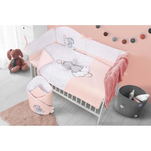 Krásna detská bavlnená 6-dielna súprava do postieľky Belisima Cute Mouse pre bábätká. Je vyrobená z mäkkého, príjemného materiálu. Súprava obsahuje obliečky na vankúšik cca 40x60 cm, obliečky na perinku cca 100x135 cm, mantinel cca 180 cm, výplň vankúšik a perinka, nebesia. Materiál 100% bavlna.<BR>Tieto výrobky sú bezpečné, pretože:<BR>- prírodná bavlna nespôsobuje odreniny a podráždenie, pretože neobsahuje formaldehydy a ďalšie prvky, ktoré dojčatám škodia<BR>- nestráca farbu a nezafarbuje oblečenie<BR>- ponúkané vzory sú príjemné na pohľad a majú upokojujúce farby<BR>- zipsy používané pri obliečkach sú tzv. "bezpečné zipsy" bez voľne visiacej koncovky, ktorú by mohlo dieťa odtrhnúť a prehltnúť<BR>- nie sú použité žiadne gombíky ani žiadne ďalšie plastové alebo oceľové časti, ktoré môžu byť pre Vaše dieťa nebezpečné - materiál, ktorý je používaný pre výplne vankúšov a prikrývok, je 100% protialergický, čo znamená, že sa v jeho vláknach nešíria žiadne mikroorganizmy ani pleseň.