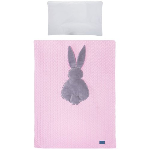 Detská 6-dielna súprava do postieľky Belisima Králíček pre bábätká. Súprava je z jednej strany z úpletového materiálu zdobená 3D vzorom a roztomilým plyšovým zajačikom. Druhá strana je bavlnená. Je vyrobená z mäkkého, príjemného materiálu. Zloženie: vrchná úpletová strana: 50% bavlna, 50% polyester. Spodná strana: 100% bavlna. Súprava obsahuje obliečky na vankúšik cca 40x60 cm, obliečky na perinku cca 90x120 cm, mantinel cca 180 cm, výplň: vankúšik, perinka a nebesia. Nebesá: 150x200 cm.<BR>Tieto výrobky sú bezpečné, pretože:<BR>- prírodná bavlna nespôsobuje odreniny a podráždenie, pretože neobsahuje formaldehydy a ďalšie prvky, ktoré dojčatám škodia<BR>- nestráca farbu a nezafarbuje oblečenie<BR>- ponúkané vzory sú príjemné na pohľad a majú upokojujúce farby - zipsy používané pri obliečkach sú tzv. "bezpečné zipsy" bez voľne visiacej koncovky, ktorú by mohlo dieťa odtrhnúť a prehltnúť - nie sú použité žiadne gombíky ani žiadne ďalšie plastové alebo oceľové časti, ktoré môžu byť pre Vaše dieťa nebezpečné - materiál, ktorý je používaný pre výplne vankúšov a prikrývok, je 100% protialergický, čo znamená, že sa v jeho vláknach nešíria žiadne mikroorganizmy ani pleseň.