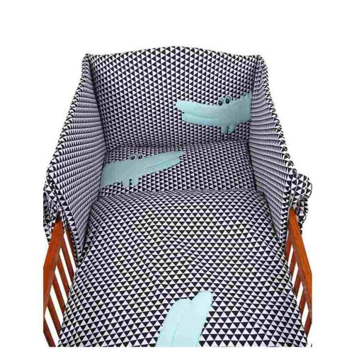 Detská bavlnená 6-dielna súprava do postieľky Womar. Súpravu zdobí vyšívaný obrázok zvieratka a výrazný vzor. Je vyrobená z kvalitného, mäkkého a príjemného materiálu. Súprava obsahuje obliečky na vankúšik cca 38x58 cm, obliečky na perinku cca 100x135 cm, mantinel cca 48x210 cm, nebesá cca 160x300 cm, vankúš a perinku. Zloženie: bavlna, polyester, výplň: 100% polyester.