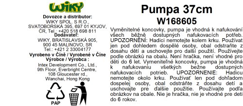 Ručná dvojčinná pumpa s tromi nádstavcami. Možno použiť na nafukovanie aj vyfukovanie. Dvojpiestová technológia. Farba čierna. rozmer pumpy: 37 cm