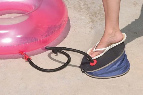 Pumpa nožná jednočinná na nafukovanie matracov, člnov, lôpt a iných hračiek. o 20% väčší objem vzduchu ako u modelu 69611 Má 3 spojovacie trysky, ktoré pasujú na malé, stredné aj veľké nafukovacie ventily Umožňujú ľahké vypúšťanie vzduchu opačným koncom nástavca. Univerzálne pripojenie na ventil umožňuje nafukovať matrace, člny, lopty a ďalšie.