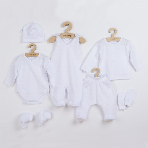 Roztomilá dojčenská 7-dielna súpravička českej značky New Baby I AM pre bábätká. Súpravička je vyrobená z veľmi príjemného, mäkkého a kvalitného materiálu, ktorý je vhodný pre bábätká a je vhodná nielen do pôrodnice. Obsahuje celorozopínacie body s dlhým rukávom, dupačky, polodupačky, kabátik, čiapočku, rukavičky a capáčky. Body má bočné zapínanie po celej dĺžke a medzi nožičkami na cvočky. Dupačky majú zapínanie na cvočky na ramienkach a medzi nožičkami, čo uľahčí obliekanie a prebaľovanie. Kabátik má zapínanie na cvočky po celej dĺžke. Čiapočka so širším lemom dobre drží na hlavičke bábätka a nepadá. Je veľmi praktická a netlačí na hlavičku bábätka. Rukavičky a capáčky majú širšiu sťahovaciu manžetku. Celá súpravička má nový neobyčajný dizajn s atraktívnym vzorom látky. Je navrhnutá s ohľadom na potreby bábätka a je vhodná aj ako milý darček. Súpravička je v praktickej Eko krabičke. Zloženie: 100% bavlna.