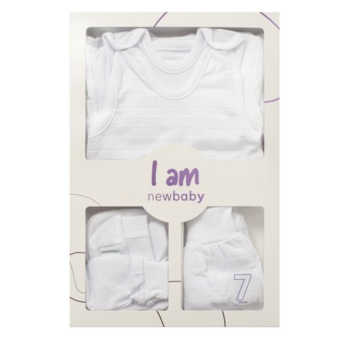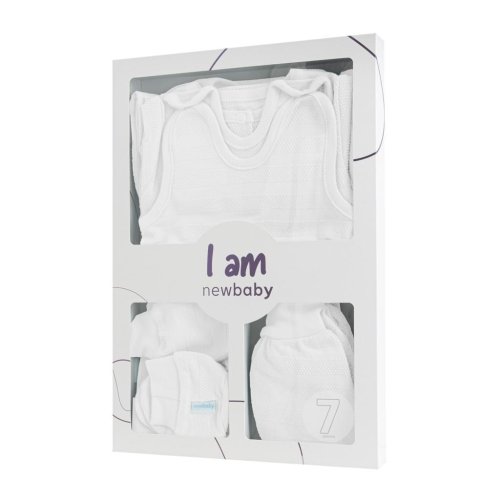 Roztomilá dojčenská 7-dielna súpravička českej značky New Baby I AM pre bábätká. Súpravička je vyrobená z veľmi príjemného, mäkkého a kvalitného materiálu, ktorý je vhodný pre bábätká a je vhodná nielen do pôrodnice. Obsahuje celorozopínacie body s dlhým rukávom, dupačky, kabátik, čiapočku, rukavičky a capáčky. Body má bočné zapínanie po celej dĺžke a medzi nožičkami na cvočky. Dupačky majú zapínanie na cvočky na ramienkach a medzi nožičkami, čo uľahčí obliekanie a prebaľovanie. Kabátik má zapínanie na cvočky po celej dĺžke. Čiapočka so širším lemom dobre drží na hlavičke bábätka a nepadá. Je veľmi praktická a netlačí na hlavičku bábätka. Rukavičky a capáčky majú širšiu sťahovaciu manžetku. Celá súpravička má nový neobyčajný dizajn s atraktívnym vzorom látky. Je navrhnutá s ohľadom na potreby bábätka a je vhodná aj ako milý darček. Súpravička je v praktickej Eko krabičke. Zloženie: 100% bavlna.