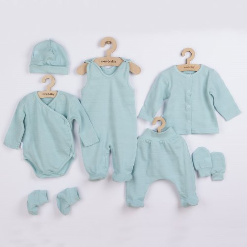 Roztomilá dojčenská 7-dielna súpravička českej značky New Baby I AM pre bábätká. Súpravička je vyrobená z veľmi príjemného, mäkkého a kvalitného materiálu, ktorý je vhodný pre bábätká a je vhodná nielen do pôrodnice. Obsahuje celorozopínacie body s dlhým rukávom, dupačky, kabátik, čiapočku, rukavičky a capáčky. Body má bočné zapínanie po celej dĺžke a medzi nožičkami na cvočky. Dupačky majú zapínanie na cvočky na ramienkach a medzi nožičkami, čo uľahčí obliekanie a prebaľovanie. Kabátik má zapínanie na cvočky po celej dĺžke. Čiapočka so širším lemom dobre drží na hlavičke bábätka a nepadá. Je veľmi praktická a netlačí na hlavičku bábätka. Rukavičky a capáčky majú širšiu sťahovaciu manžetku. Celá súpravička má nový neobyčajný dizajn s atraktívnym vzorom látky. Je navrhnutá s ohľadom na potreby bábätka a je vhodná aj ako milý darček. Súpravička je v praktickej Eko krabičke. Zloženie: 100% bavlna.