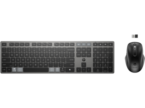 Obsah balenia Bezdrôtová klávesnica; Bezdrôtová myš; Nabíjací kábel USB Type-C®; Úvodná príručka; Záručný list; Jednotný dongle HP