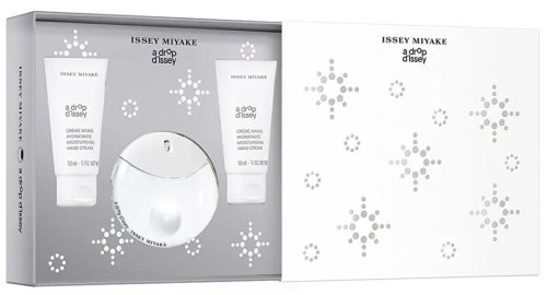 Podčiarknite svoju jedinečnosť s parfumovou vodou Issey Miyake A Drop D'Issey, ktorá je oslavou prirodzenej krásy a zmyselnosti. Vôňa sa otvára jemnými tónmi mandle a damašskej ruže, ktoré vás okamžite okúzlia svojou eleganciou. V srdci sa rozvíja kvetinová harmónia s akordmi badiánu, pomarančových kvetov, jazmínu, orgovánu a žiarivých slnečných tónov. Základ vône dodáva hĺbku vďaka spojeniu cédra, pižma a sladkej vanilky. Táto sofistikovaná vôňa bola predstavená v roku 2021 a odráža dokonalú rovnováhu medzi eleganciou a prirodzenosťou, ktorá podčiarkne vašu osobnosť. Súčasťou sady je: