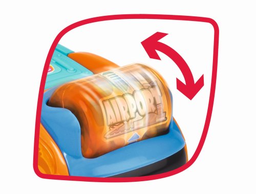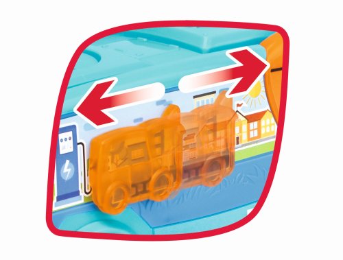 Autobus na voľnobeh, s otočným hrkálkou s cieľovou stanicou, s otváracími dverami a bočným pohyblivým prvkom. Dĺžka 22 cm.