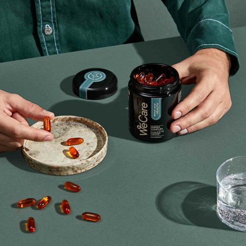 Doplnok stravy WeCare about your HEALTH - Omega complex obsahuje zmes lososového, pupalkového a olivového oleja v jedinečnej rovnováhe omega-3-6-7-9 mastných kyselín. Vysoko kvalitne spracovaný lososový olej je bohatým zdrojom omega-3 mastných kyselín, konkrétne kyseliny eikosapentaénovej (EPA) a dokosahexaénovej (DHA) a neesenciálnych omega-7 a omega-9 mastných kyselín. Pupalkový olej je jedným z najbohatších zdrojov omega-6 mastných kyselín, predovšetkým kyseliny linolénovej a gama-linolénovej. DHA prispieva k udržaniu normálneho stavu zraku a činnosti mozgu. EPA a DHA prispievajú k normálnej činnosti srdca. Vitamín D je v tukoch rozpustný vitamín, ktorý je nevyhnutný pre správnu funkciu kostí, zubov, svalov a na podporu imunitného systému. Tento doplnok stravy obsahuje aj astaxantín, prírodný karotenoid známy svojou prítomnosťou v lososom pigmente.