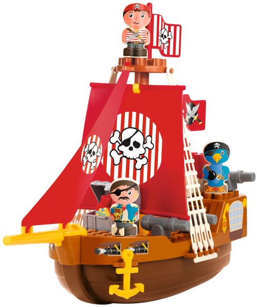 Pirátska loď s príslušenstvom z obľúbeného radu Abrick pre najmenších. 2 figúrky pirátov a papagája súčasťou. Rozmery: 43 x 19 x 35 cm.