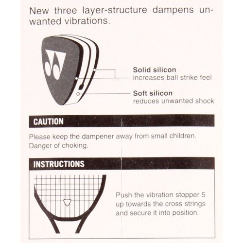 Vibrastopy patria do základnej výbavy každého správneho tenistu. Sú navrhnuté na znižovanie vibrácií strún, tlmia "zvonivý" zvuk rakiet, a tým prispievajú k väčšiemu komfortu pri hre. Tlmidlo vibrácií Yonex AC 165 je vyrobené z odolnej silikónovej gumy v trojvrstvovej štruktúre pre maximálny výkon. Balenie obsahuje 2 ks vibrastopov.