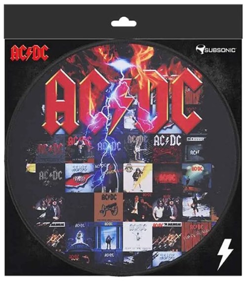 Herná podložka AC/DC Gaming Mouse Pad , ktorá je navrhnutá pre intenzívny gaming a všetky typy myší. Je zhotovená z kvalitnej tkaniny , ktorá podporuje presnú kontrolu snímača a plynulý pohyb. Protišmyková gumová základňa zaistí potrebnú stabilitu aj pri zbesilej hernej akcii. Vďaka priemeru 30 cm poskytuje dostatočnú plochu na manipuláciu. Podložka pod myš AC/DC Gaming Mouse Pad je vyvedená v dizajne legendárnej hard rockovej kapely AC/DC. Kvalitná potlač detailne zobrazuje obaly jednotlivých albumov a predstavuje ideálny herný doplnok pre všetkých fanúšikov.