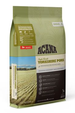 KRMIVO S JEDINÝM ZDROJOM ŽIVOČÍŠNEHO PROTEÍNU ACANA YORKSHIRE PORK OBSAHUJE 50% YORKSHÍRSKEHO BRAVČOVÉHO, KTORÉ JE NÁM DODÁVANÉ ČERSTVÉ V PODIELE CELEJ KORISTI. VĎAKA VÝŤAŽKU Z MRAZOM SUŠENEJ PEČENE CHUTNÁ AJ VYBERAVÝM JEDLÍKOM. ČERSTVÉ TEKVICE A MÁSLOVÉ TEKVICE POSKYTUJÚ ROZPUSTNÚ VLÁKNINU, ČO PROSPIEVA PSOM S CITLIVÝM ZAŽÍVANÍM.