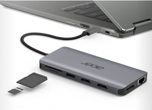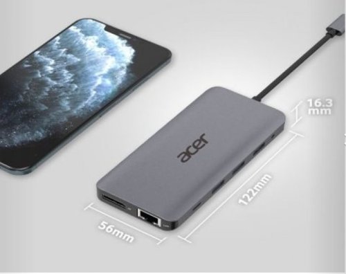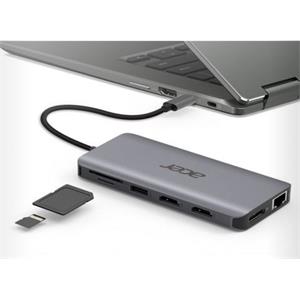 ACER 12v1 docking station/dongle USB-C: 2×USB3.2, 2×USB2.0, čítačka 1×SD/TF 2×HDMI, 1×PowerDelivery, 1×DP,1×RJ45,1×3.5 Audio