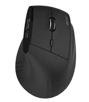 Acer Easy Fit Mouse - Black, Wireless RF 2.4GHz + BT (2x) + USB, ergonomická (pre pravákov) s komfortným matným povrchom, tiché tlačidlá, citlivosť 4000 DPI (4 stupne 1000-4000), 6 tlačidiel, RGB podsvietenie (16 módov Li-ion batéria 500mAh, výdrž až 120 hodín, nabíjací čas 2,5 hodiny, rozmery 125 x 70 x 42 mm, 100 g, Win/macOS, Chrome OS, retail pack