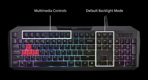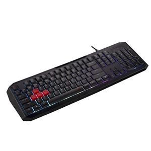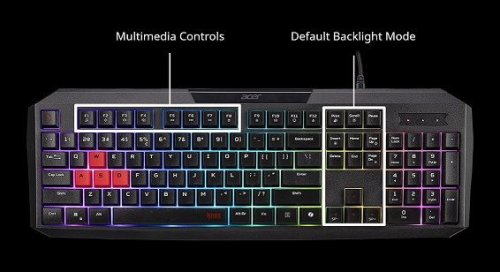 Acer Nitro Gaming Keyboard 100, Membrane Switch, 26 Anti-ghosting klávesov, životnosť 3 mil. stiskov, 7 zón RGB podsvietenia, 11 svetelných módov, červené klávesy WASD, Copilot key, konektor USB-A s káblom 1,8 m, CZ/SK layout, hmotnosť 4 170 x 37 mm, čierna (Retail Pack)