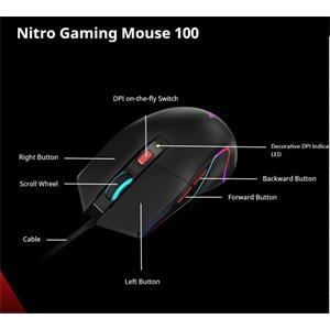 ACER NITRO MOUSE NMW100 BLACK, UP TO 7200 DPI, WIRED, 6 BUTTONS, RETAIL PACK