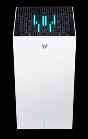 Predator Connect T7 - Wifi 7 Mesh Router, 802.11 b/g/n/ac/ax/be 2x2 Tri band 2.4GHz+5GHz+ 6GHz, MLO, Hybrid QoS, Intel Killer Prioritisation Engine, Trend Micro Network Security, Qualcomm CPU, 1GB Mem, 1GB Mem 2.5GbE, 2x LAN 1GbE, Power button, Pin Hole reset, WPS button, Internal Antennas, Adapter 12 V/3 A, EU plug, 109x109x212 mm, 915 g, Predator Connect App, White with Blue LED