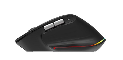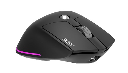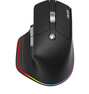 Acer Smart Fit Vertical Mouse - Black, Wireless RF 2.4GHz + BT (2x) + USB, vertikálna (pre pravákov), citlivosť 8000 DPI (5 stupňov 1600-8000), 10 tlačidiel, RGB podsvietenie (11 módov), dosah 10 m, USB-0, až 120 hodín, nabíjací čas 2,5 hodiny, rozmery 118 x 79 x 59 mm, 115 g, Win/macOS/Chrome OS, retail pack