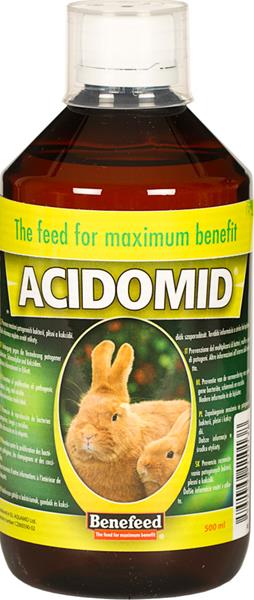 ACIDOMID ® je špičkový výrobok modernej koncepcie pôsobiaci nielen proti množeniu patogénnych baktérií, ale veľmi dobre tiež tlmí rozvoj a množenie vnútrobunkových parazitov ako napr. kokcídií. ACIDOMID ® však nie je liečivo, neobsahuje ani kokcidiostatika a nezanecháva tak rezíduá v organizme. Nemá tiež ochranné lehoty.