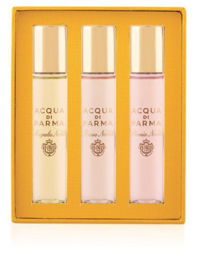 Objavte čaro exkluzívnych vôní Acqua Di Parma vďaka tejto elegantnej darčekovej sade miniatúr Le Nobili. Táto sada je ideálna pre ženy, ktoré chcú preskúmať rozmanitosť a rafinovanú sofistikovanosť kolekcie Le Nobili, a zároveň ocenia možnosť vyskúšať tri ikonické vône v praktickej veľkosti. Súčasťou sady je: