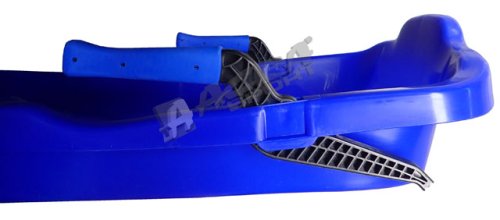 Bob plastový Turbojet s brzdami, určený na rekreačný šport. Jedná sa o pevný bôb s modernými tvarmi, ktorý sa vlastnosťami na snehu a pevnosťou vyrovná ktorémukoľvek inému bôbu. K dispozícii vo farbe modrej, viď foto. Rozmerovo patrí medzi väčšie bôby – 85 x 42 x 19 cm.