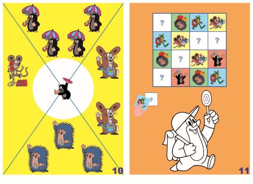 obálka s lesklou povrchovou úpravou + 24 vnútorných strán + samolepky, na každej stránke sú aktívne prvky spojené s poznávaním farieb, tvarov vrátane písmen a číslic, jednoduchého počítania, hlavolamy, bludisko, detské sudoku atď., pre kontrolu správnosti je uvedené správne riešenie