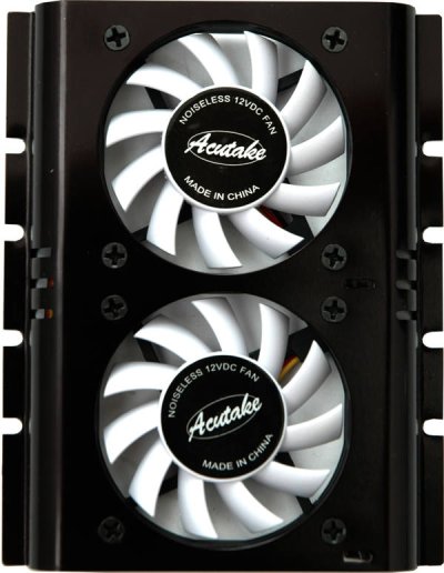 Kvalitný supertichý chladič na chladenie 3,5" pevných diskov s hlučnosťou len 15,6dB/A s dvoma aktívnymi 60x60x10mm ventilátormi s novými Hypro Bearing ložiskami a trojpinovými konektormi umožňujúcimi pohodlný monitoring funkčnosti prípadne reguláciu otáčok ventilátora.