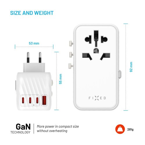 Cestovný adaptér FIXED Voyager ocenia nielen bežní používatelia, ale aj cestovatelia a businessmani. Či už vyrážate na dovolenku do zahraničia alebo na pracovnú cestu, hodí sa vám univerzálna nabíjačka , ktorá pasuje v podstate do každej zásuvky. Adaptér obsahuje niekoľko vysúvacích nabíjacích kolíkov . Prispôsobíte ho s ich pomocou rôznym typom zásuvkám kdekoľvek v EÚ, USA, Austrálii, na Novom Zélande alebo napríklad v Británii. Záleží, do akej krajiny sa chystáte.